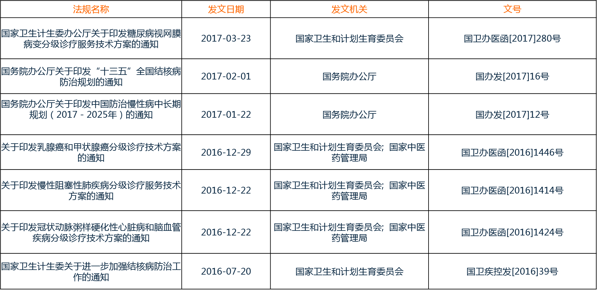 慢病管理将成为分级诊疗重要切入口。1月22日,国务院办公厅印发中国防治慢性病中长期规划(2017—2025年),提出到2020年,力争30至70岁人群因心脑血管疾病、癌症、慢性呼吸系统疾病和糖尿病导致的过早死亡率较2015年降低10%,到2025年降低20%。老年慢性病患者可以由家庭签约医生开具慢性病长期药品处方。
