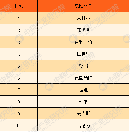 2017年双十一全网乘用车轮胎品牌日销售额排行榜TOP10