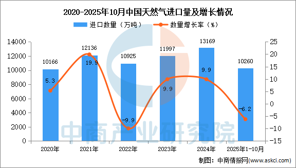 电子游艺官网讯:据中商产业研究院数据库显示,2024年中国天然气进口量13169万吨,同比增长9.9%。最新数据显示,2025年1-10月我国天然气累计进口量10260万吨,同比下降6.2%。
