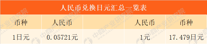 日元对人民币今日汇率实时行情: