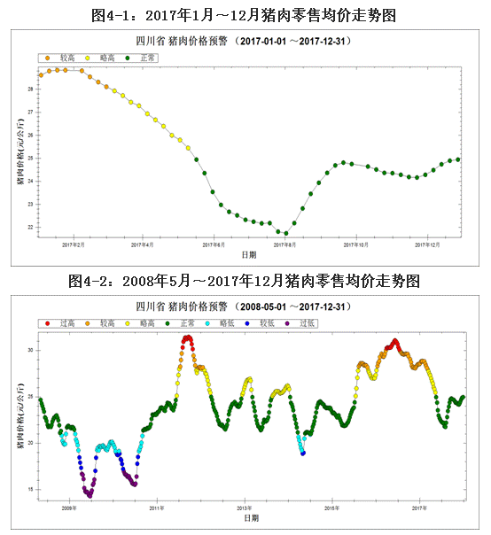 4)猪肉:全年猪肉零售均价与育肥猪价格走势类似。开年在28.80元/公斤左右稳定运行1个月,于2月中旬开始逐周下跌到8月初,创下全年最低价21.73元/公斤,跌幅达24.63%;在连续拉升7周于国庆前回到24.81元/公斤后,小幅震荡运行至年底以24.94元/公斤收官。全年均价25.09元/公斤,同比下跌4.41元/公斤、跌幅14.95%,位列2008年监测以来第4高的价位。